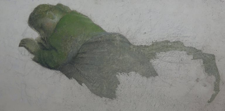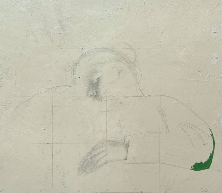 crayon, oil on canvas